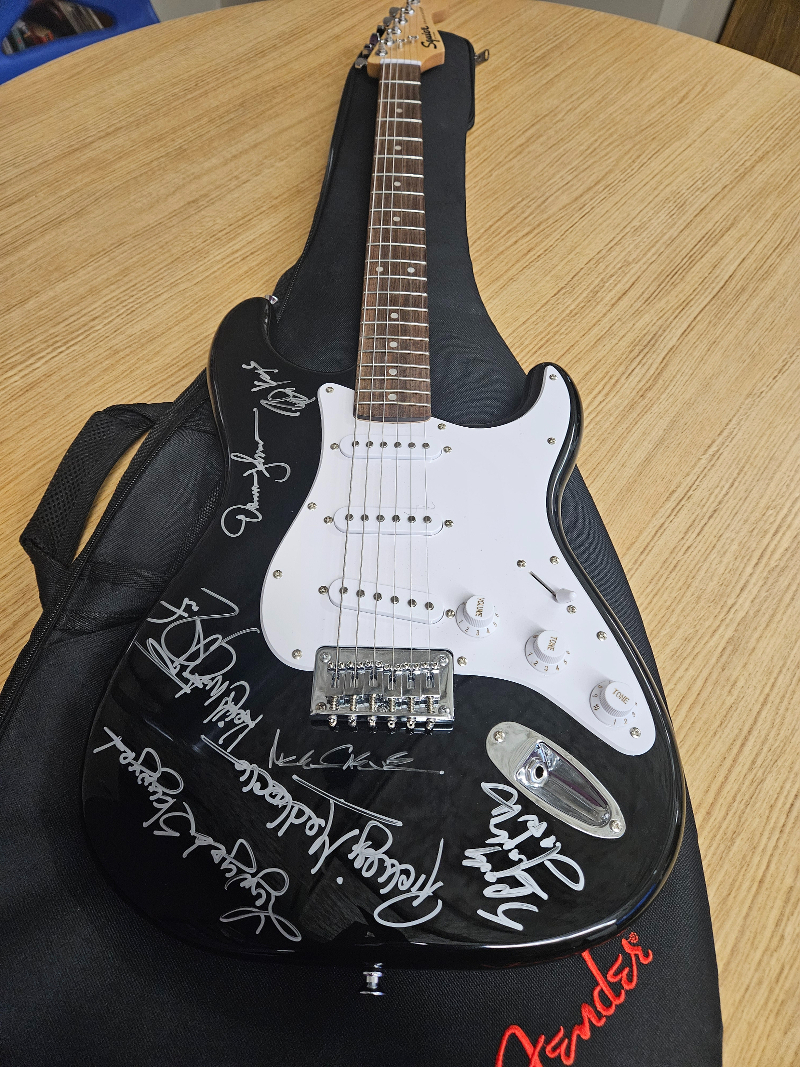 <p>This guitar was signed backstage at the Sharp Dressed Simple Man tour 8/30/24 Treasure Island Casino, Minnesota. Rickey Medlocke can confirm its authenticity upon request. Shipping is not included in the final price. Signed by all 2024 touring members.</p><p><br></p><p><span style="color: rgb(63, 66, 84); font-size: 13px; text-align: center;">All net proceeds will benefit the Mississippi Delta Blues Camp 501(c)3, based in Clarksdale, MS. The camp fosters empowerment and self-determination in historically marginalized and low income youth, through the power of Blues Music history, performance, recording arts and business, while also tapping into career skill development in agriculture.</span></p>